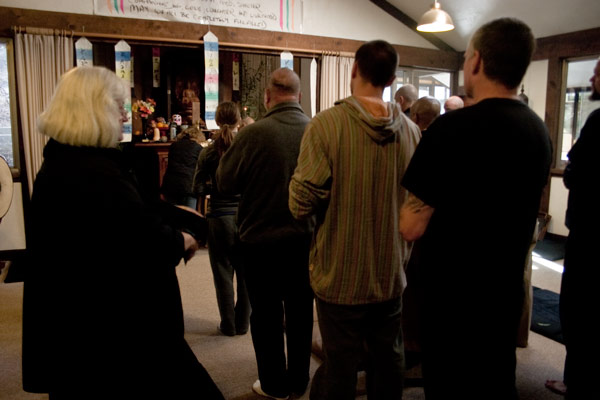 Everyone offering incense during the Obon ceremony